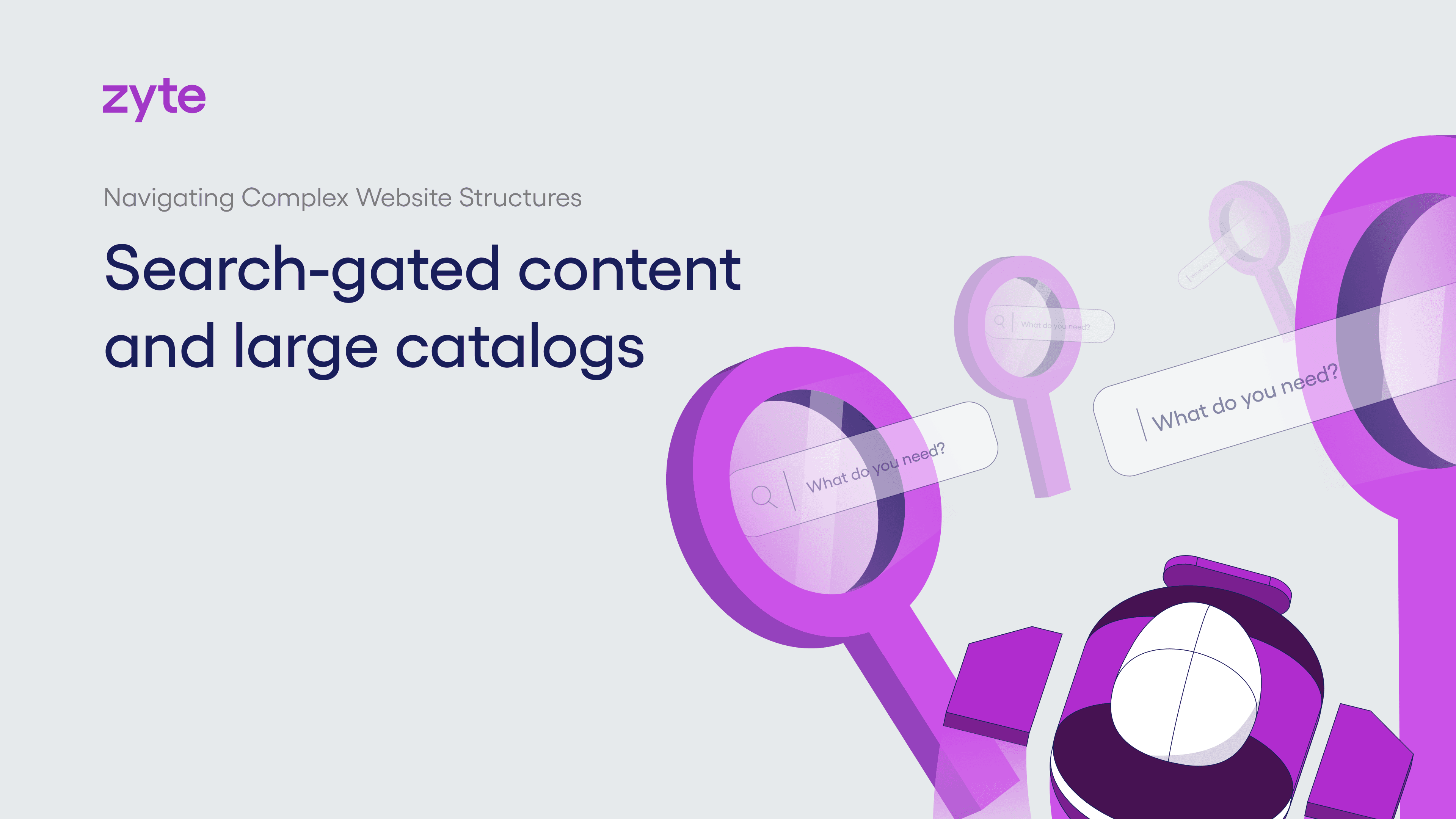 For search-gated content, use a web scraping API with a headless browser that can perform search-based crawling. This allows you to target specific content efficiently.