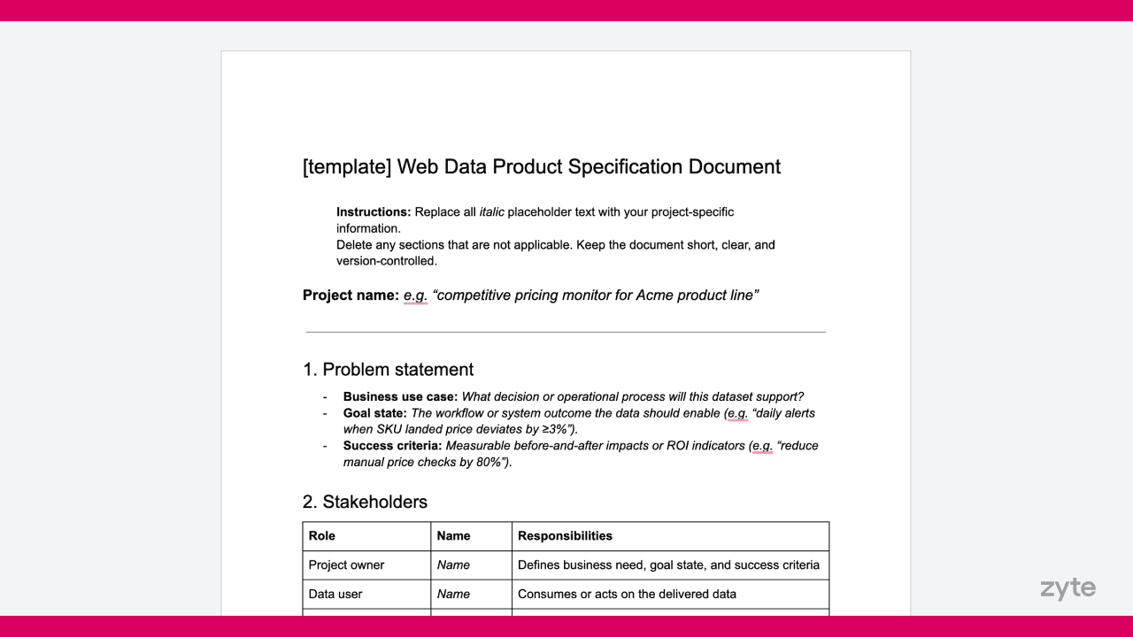 Product documents like this have become integral to modern software development practices. But what about web scraping?