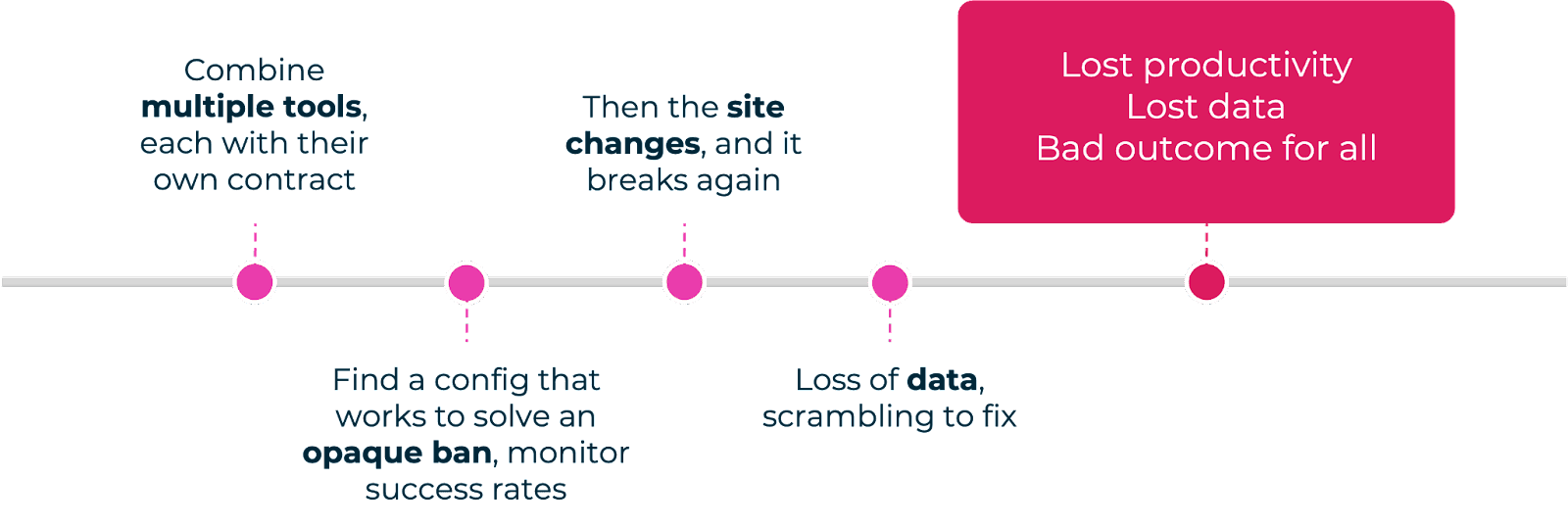 Changes in anti-bot leading to breaks in solution can mean loss of data — your team is under immense pressure when unhappy customers are on the phone.Â