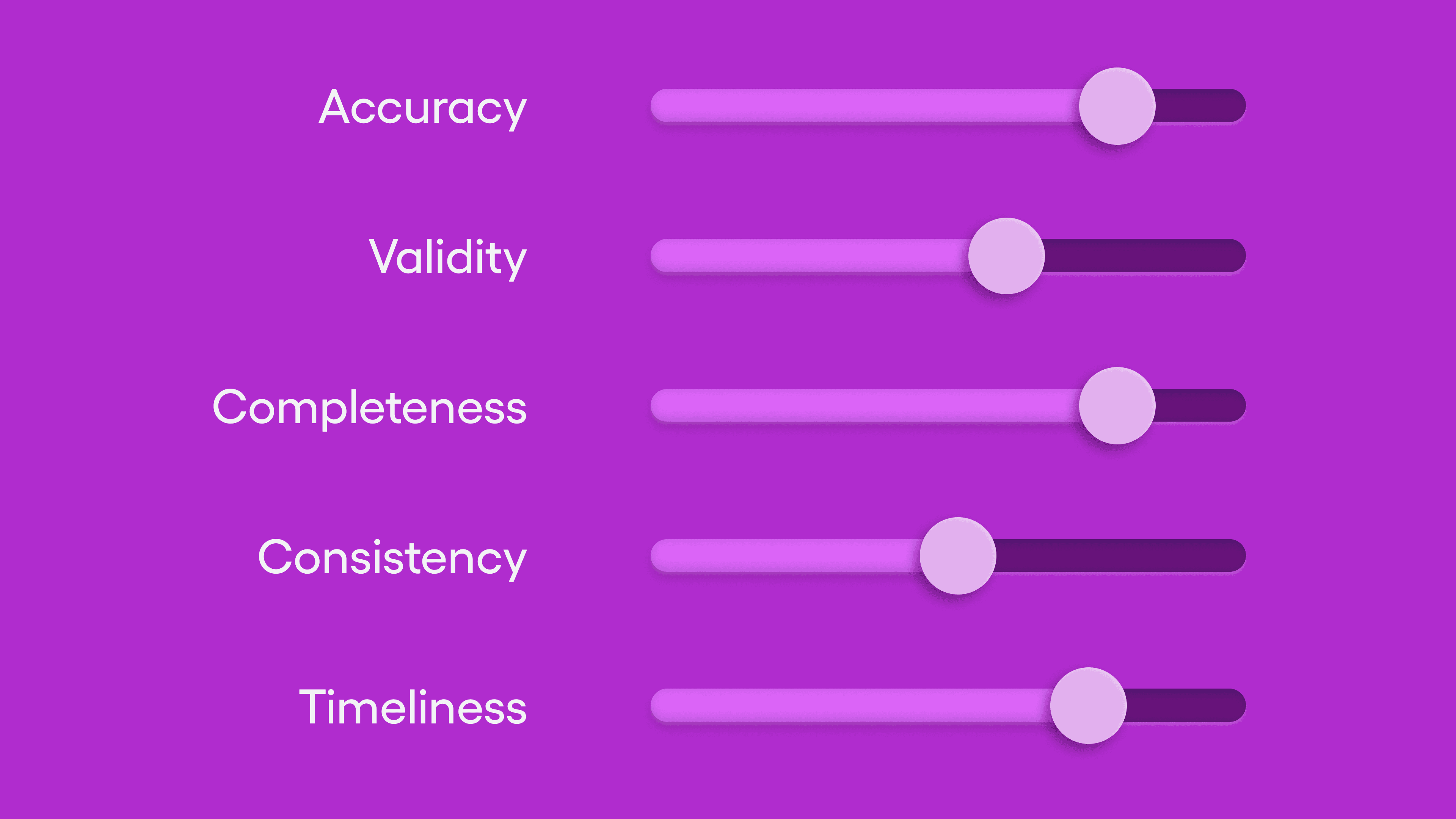 Because each of these dimensions may be more or less critical to you, Artur says you can define your project’s “data quality” by thinking of the criticality of each dimension as though on a sliding scale.