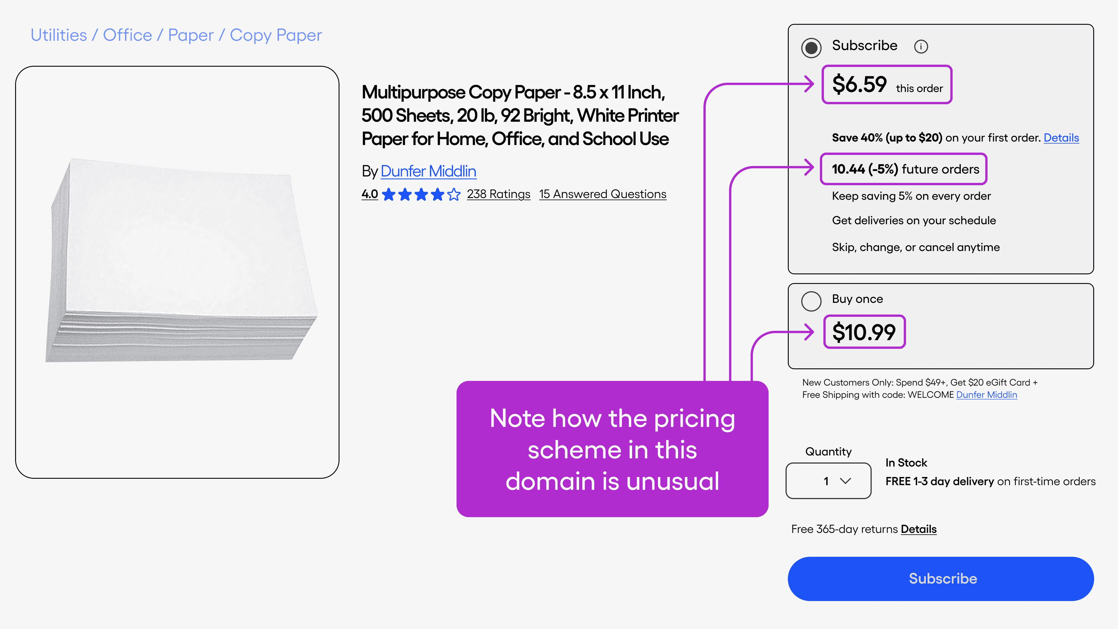Take a product page as an example. Typically, an ecommerce listing contains a single price, occasionally an additional discount price – something our standard product schema has long handled effortlessly. But what if you want to get three price points from the page?