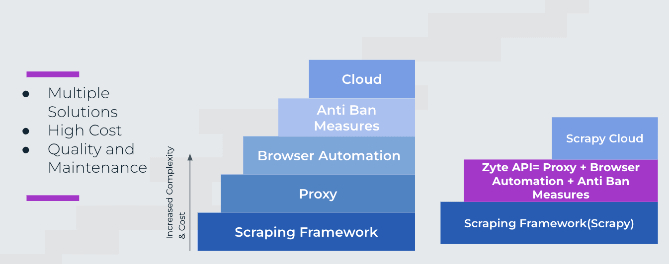 With services like Zyte API Enterprise, you can effectively break the painful cycle of build, break, fix, ban, and unblock, while maintaining global compliance as you scrape even the most complex websites. It’s the dynamic duo that will supercharge your data-scraping team.