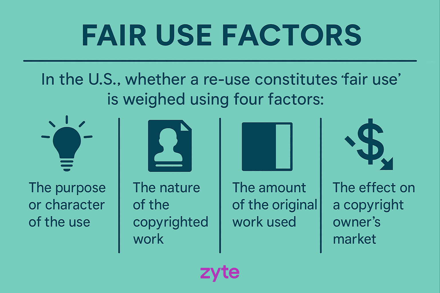 In the U.S., whether a re-use constitutes "fair use" is weighed using four factors: