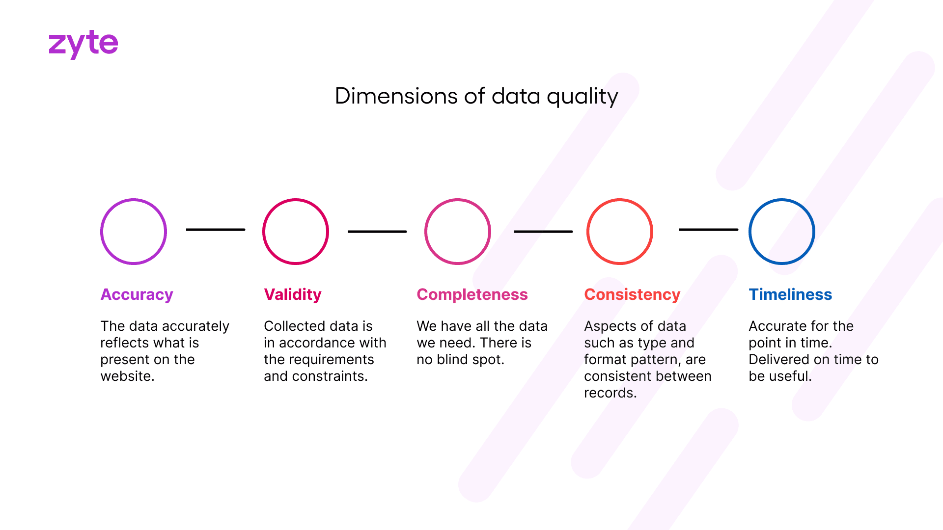 Making sure your web data is trustworthy at scale is incredibly important, so one of the defining success factors is a comprehensive quality assurance (QA) process. The best web scraping tech stack in the world is useless if data integrity can’t be trusted.Â
